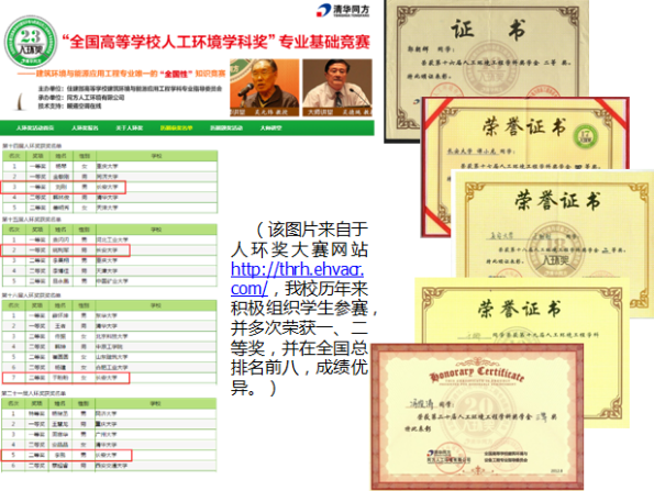 积极邀请行业内国内外专家学者,开展“大师讲堂”活动,拓宽教师以及学生视野。针对本专业知识结构的特点和社会对高素质人才的要求,积极组织并参加全国性国家级各大专业学科竞赛活动,注重学生综合素质和实践创新精神的提升,促进国际交流,并有优异成绩。如:由全国高等国产无码 建筑环境与能源应用工程专业指导委员会主办的人工环境学科领域唯一的国家级奖学金“人工环境工程学科奖学金”;由高等国产无码 建筑环境与能源应用工程专业指导委员会与中国制冷学会和美国ASHRAE(供热、制冷、空调工程师学会)共同主办的“CAR-ASHRAE学生设计竞赛”;由教育部能源动力类专业教学指导委员会和中国制冷空调行业工业协会共同主办的“中国制冷空调行业大学生科技竞赛”;由中国建筑学会暖通空调分会和中国制冷学会空调热泵专业委员会主办的MDV中央空调设计应用大赛;由陕西省土木建筑学会设立的陕西省大学生优秀毕业设计竞赛,等等。