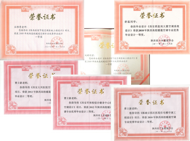 历年我专业“中国制冷空调行业大学生科技竞赛”、“MDV中央空调设计应用大赛”、“陕西省大学生优秀毕业设计竞赛”获奖