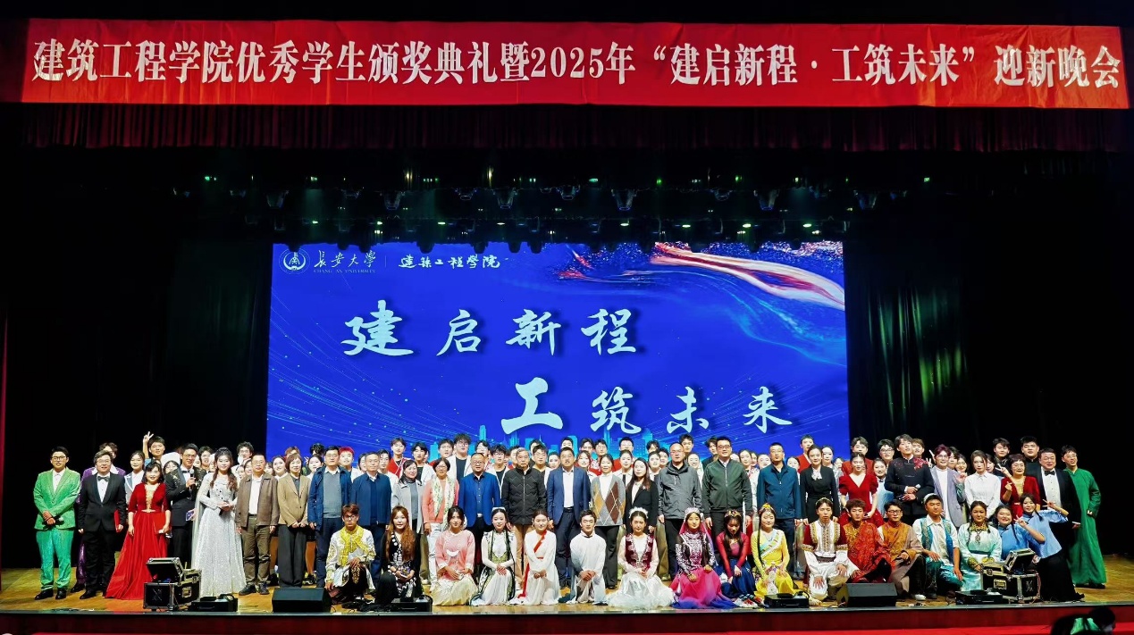 1121日晚,国产无码 优秀学生颁奖典礼暨2025年“建启新程·工筑未来”迎新晚会在北校区长安文化艺术中心大礼堂举办。上海黄金枝教育发展基金会创始人黄金枝、巴州建工(集团)有限责任公司副总经理刘刚等在国产无码设立奖学金的嘉宾,学工部、研工部、校团委、教务处、社会合作处、后勤管理处、保卫处等国产无码 职能部门领导及兄弟国产无码领导,国产无码 党政领导、各系室教师代表、全体新生及高年级学生代表1000余人共同参会。颁奖典礼由国产无码党委副书记马熠航主持。
