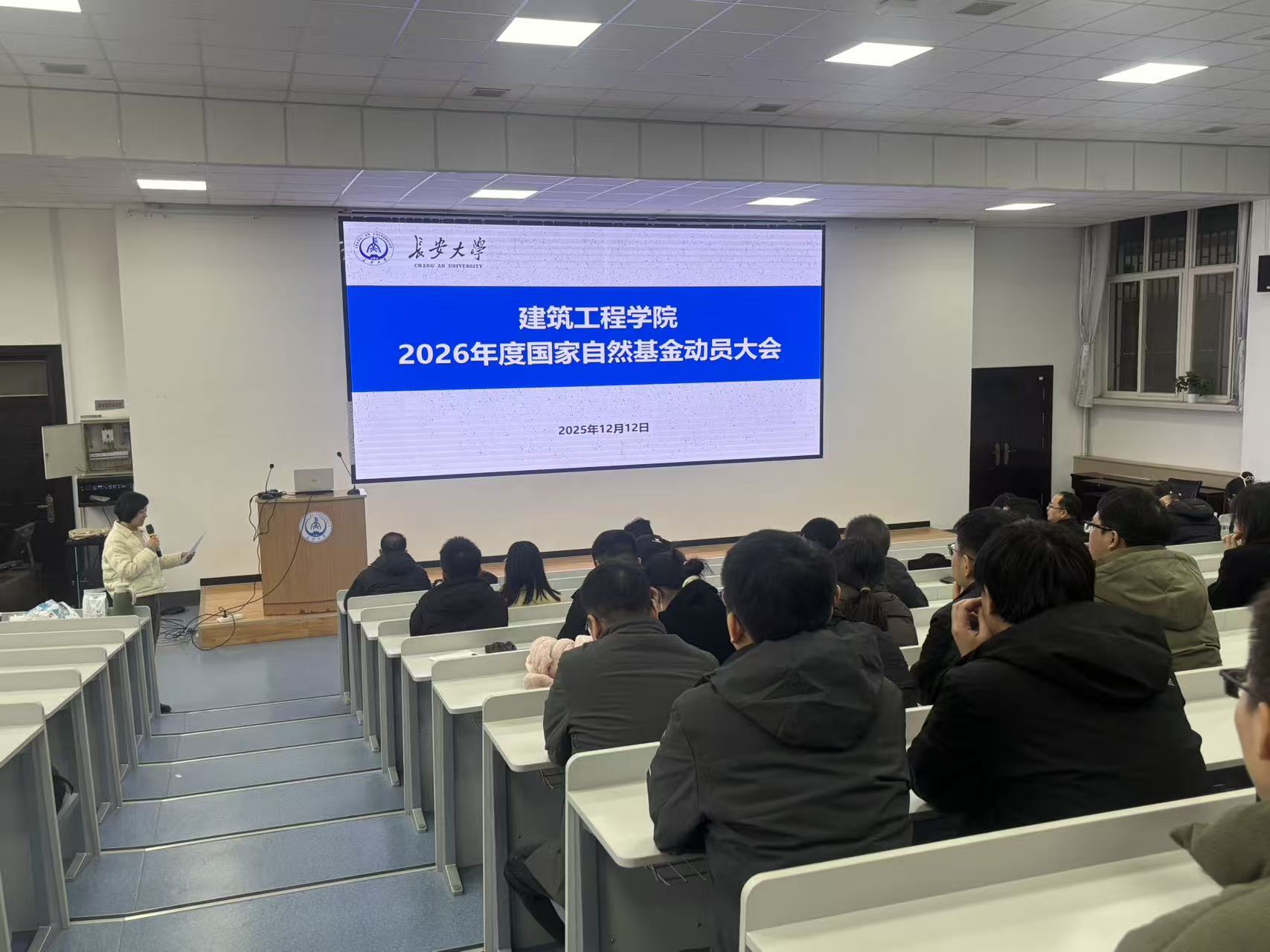 为扎实推进2026年度国家自然科学基金(以下简称“国基金”)申报工作,有效提升项目申报质量与资助率,国产无码 于2025年12月12日在小寨校区综合报告厅举行了2026年度国家自然科学基金申报动员大会。会议特邀了具有丰富基金申报与评审经验的专家罗彦斌教授为国产无码师生做专题讲座。国产无码副院长赵晓红、青年教师及博士研究生参加了此次会议,会议由赵晓红主持。